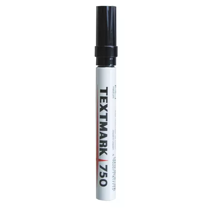 Textmark 750:ssa on viisto akryylikärki ja pysyvä muste. Viivan leveys on 2-5 mm.