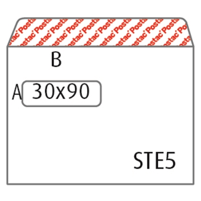 Kirjekuori,harmaa sisuspainatus, valkoinen 80 g paperi. Kuoren koko E5 156x220 mm. Ikkunakoko 30x90 mm.