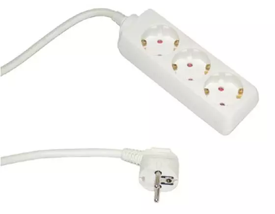 Airamin maadoitettu ja lapsisuojattu 3-osainen jatkojohto sisäkäyttöön. Pistokkeet ovat 45 ° kulmassa. Johdon pituus: 1,5 m Kaapeli: H05VV-F / 3 x 1,5 mm² Kotelointiluokka: IP20