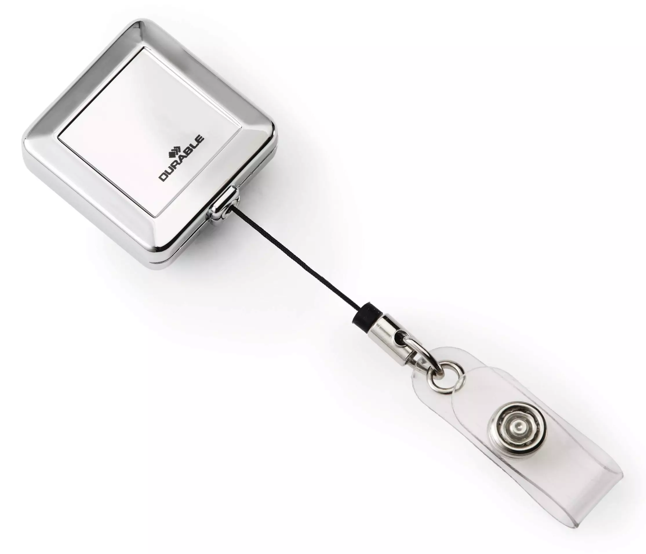 Ensiluokkainen jojo kulkukorteille yms. tyylikkäällä kromatulla viimeistelyllä. Takana metalliklipsi vyölenkkiin tai vaatteisiin kiinnittämistä varten. Tarjoaa nopean ja helpon tavan käyttää kulkukortteja ja DURABLE-korttikoteloiden kiinnitykseen.