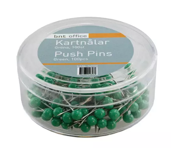 Nuppineulamalli. Pituus 20 mm. Nupin halkaisija 4 mm. Vihreä.
