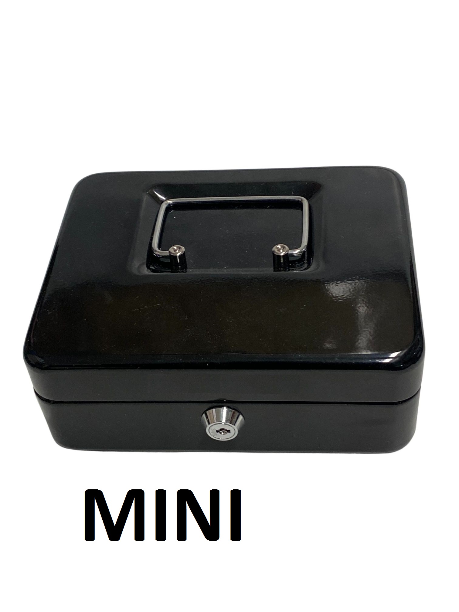 Materiaali terästä. Kantokahva. Kassalippaan sisällä muovinen lokerikko kolikoita varten. 2 avainta.