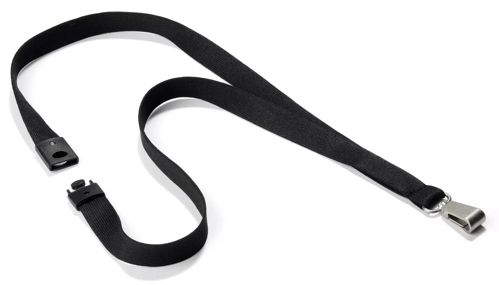 Tekstiilikaulanauha, jossa on turvallinen suljin, joka avautuu, jos sitä vedetään liian voimakkaasti. Erittäin leveällä, metallista valmistetulla lukkokoukulla (12 mm). Ihanteellinen avaimenperäksi, nimikylttien nauhaksi tai henkilöllisyystodistuksen pidikkeeksi Silkinpehmeää tekstiililaatua. Rannekkeen mitat: 44 x 1,5 cm (P x L).