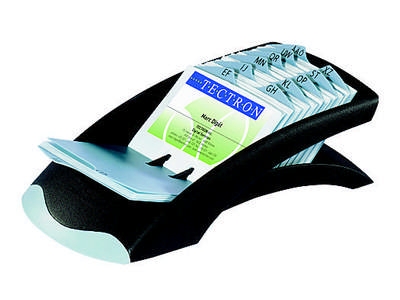 Selailutelineessä on 100 korttitaskua ja yhteen taskuun voi laittaa 2 käyntikorttia (max. 72 x 104mm). Aakkosrekisteri A-Z. Saatavana myös lisäkäyntikorttitaskut (tuotenro 200424). Koko 245 x 131 x 67mm.