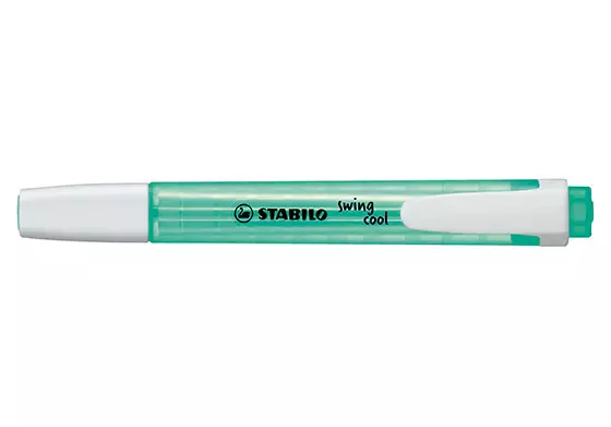 Stabilo Swing Cool on tavanomaista korostuskynää kapeampi ja sirompi. Korkealaatuinen, vesipohjainen ja myrkytön fluoresoiva muste juoksee kevyesti viistosta kärjestä, jonka kahdella eri kirjoitusleveydellä sekä alleviivaat että korostat. Kynä ei kuivu neljään tuntiin, vaikka korkki unohtuisi auki. Kynässä on myös taskuklipsi.