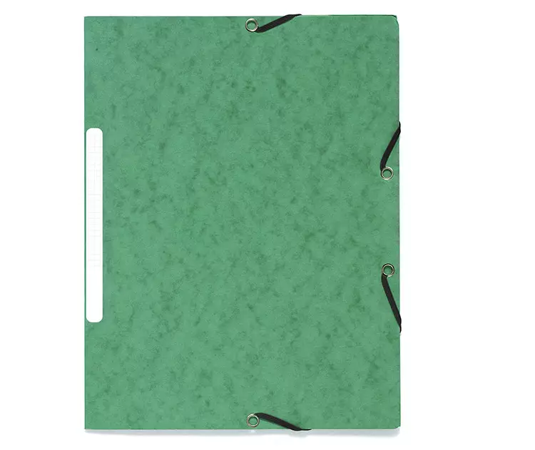 Valmistettu 100% kierrätetystä 375 g/m2 kartongista. Seläkkeen leveys noin 20mm. Kuminauha kiinnitys, kolme läppää. Seläkkeessä tarra identifiointia varten. Mitat: 24,5x32cm. Väri musta. Tuotteella on Sininen Enkeli -ympäristömerkki. Kapasiteetti 250 arkkia.