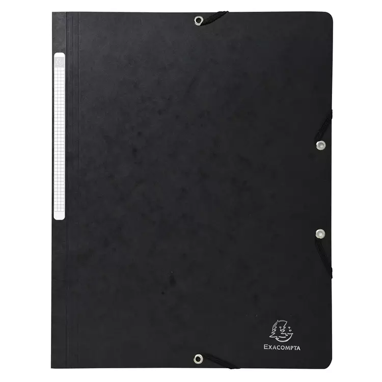 Kulmalukkokansio A4 kartonki 335g iman läppää. FSC-sertifioitu. selkämysetiketti. Mitat 24 x 32 cm.Musta.
