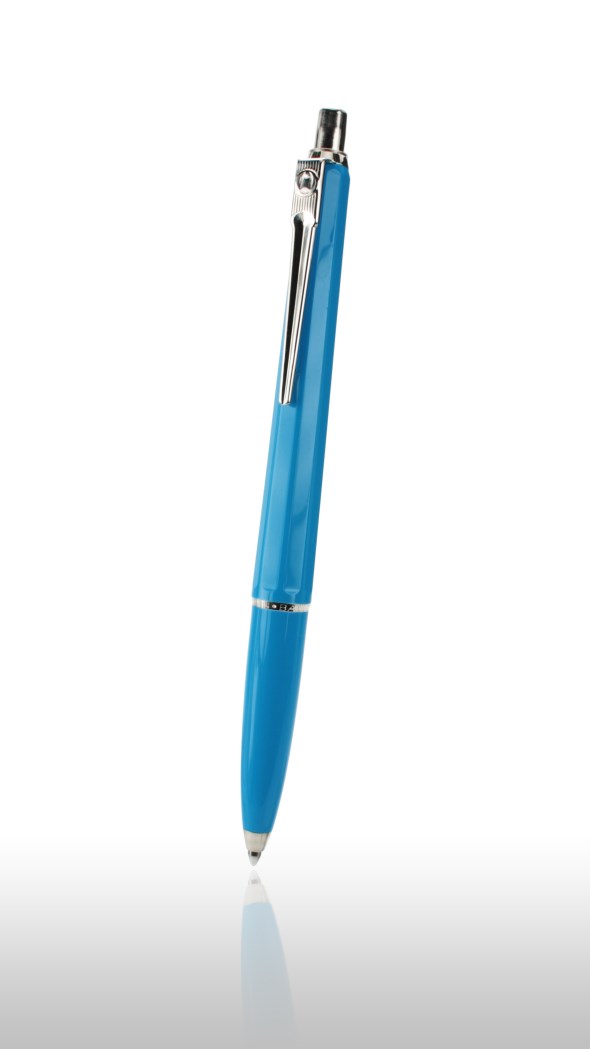 Kuulakärkikynä kromatuilla metalliosilla. Painomekanismilla elinikäinen takuu. Vaihdettava säiliö, jonka kirjoituspituus on n. 8000 metriä. Sininen muste.