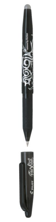Ainutlaatuisen Pilot Frixion Ball -kuulakynän jälki on poispyyhittävissä kynän päässä olevalla kumilla pitkänkin ajan kuluttua (jopa 2 vuotta) ja päälle voi kirjoittaa heti.