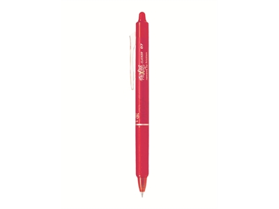 Kuulakynä Pilot Frixion Clicker punainenAinutlaatuisen Pilot Frixion Cliker -kuulakynän jälki on poispyyhittävissä kynän päässä olevalla kumilla pitkänkin ajan kuluttua (jopa 2 vuotta).Frixion Clickerissä on painomekanismi kynän sivussa ja kynän runko on musteen värinen. Saatavana 8 eri väriä.Kärjenleveys on 0.7 ja viivan leveys 0.35 mm.Pilot Frixion tuoteperheeseen kuuluu myös mekanismiton kuulakynä ja korostuskynä useissä eri väreissä. värissä.