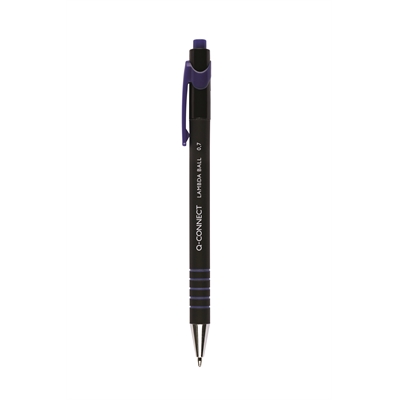 Sininen kumipintainen runko. Muoviklipsi ja metallikärki, kuulakärjen leveys 1,0 mm. Sininen muste.