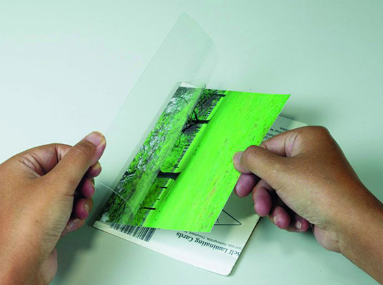 Laminoitava materiaali asetetaan taskuun, otetaan suojapaperi pois ja painetaan kalvot vastakkain. 70/175mic.