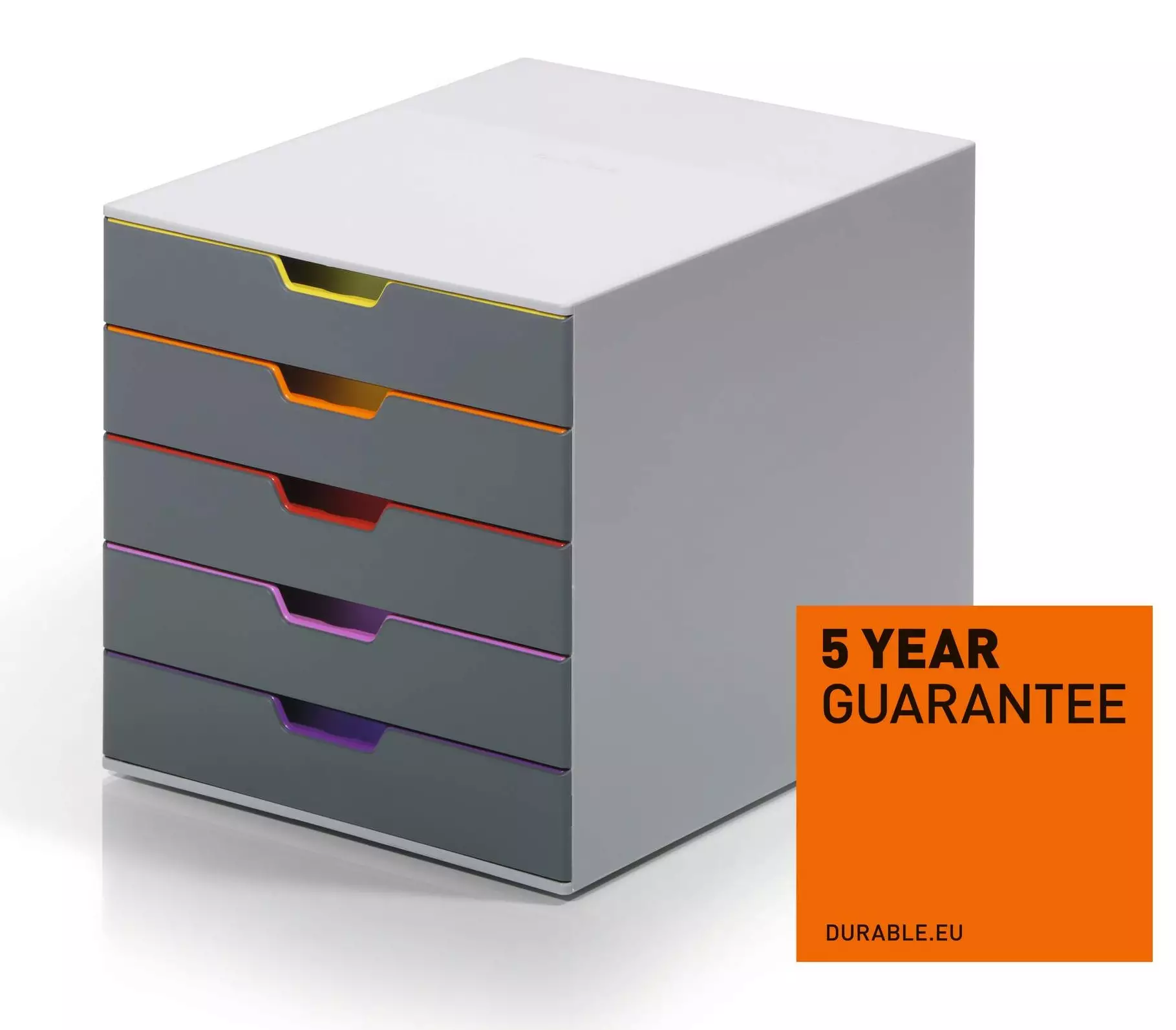 Asiakirjojen järjestäminen on helppoa: laatikkorasiat modernissa VARICOLOR ® -mallissa . Kirkkaanväriset laatikot auttavat luokittelemaan asiakirjat ja näyttävät myös houkuttelevilta jokaisella työpöydällä, joka tarjoaa tyylikkäät värilliset muodot, kun laatikot ovat kiinni.