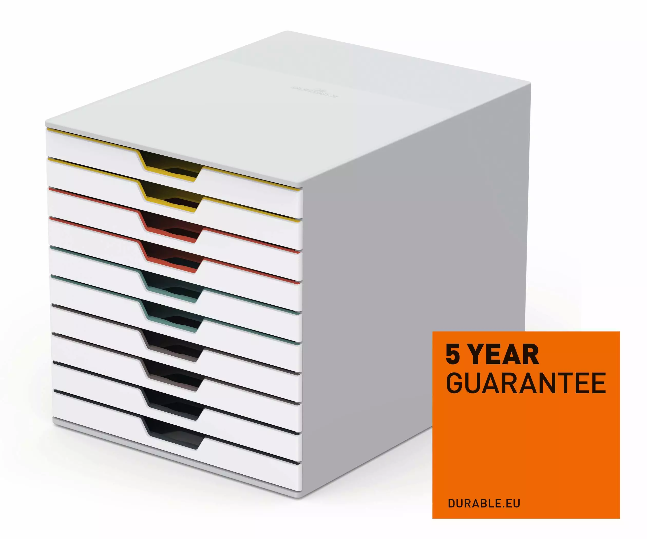 Asiakirjojen järjestäminen on tehty helpoksi: laatikkolaatikot modernilla VARICOLOR ® -designilla . Elävien värien laatikot helpottavat asiakirjojen luokittelua ja näyttävät myös houkuttelevilta millä tahansa pöydällä, jossa on tyylikkäät värilliset ääriviivat, kun laatikot on suljettu.