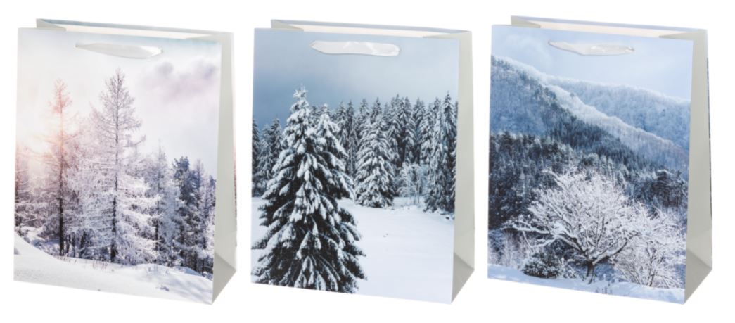 3 kuosivaihtoehtoa, Talvimetsä Lahjakassit tekevät lahjojen paketoimisesta helppoa ja nopeaa. Kaunis lahja hetkessä.