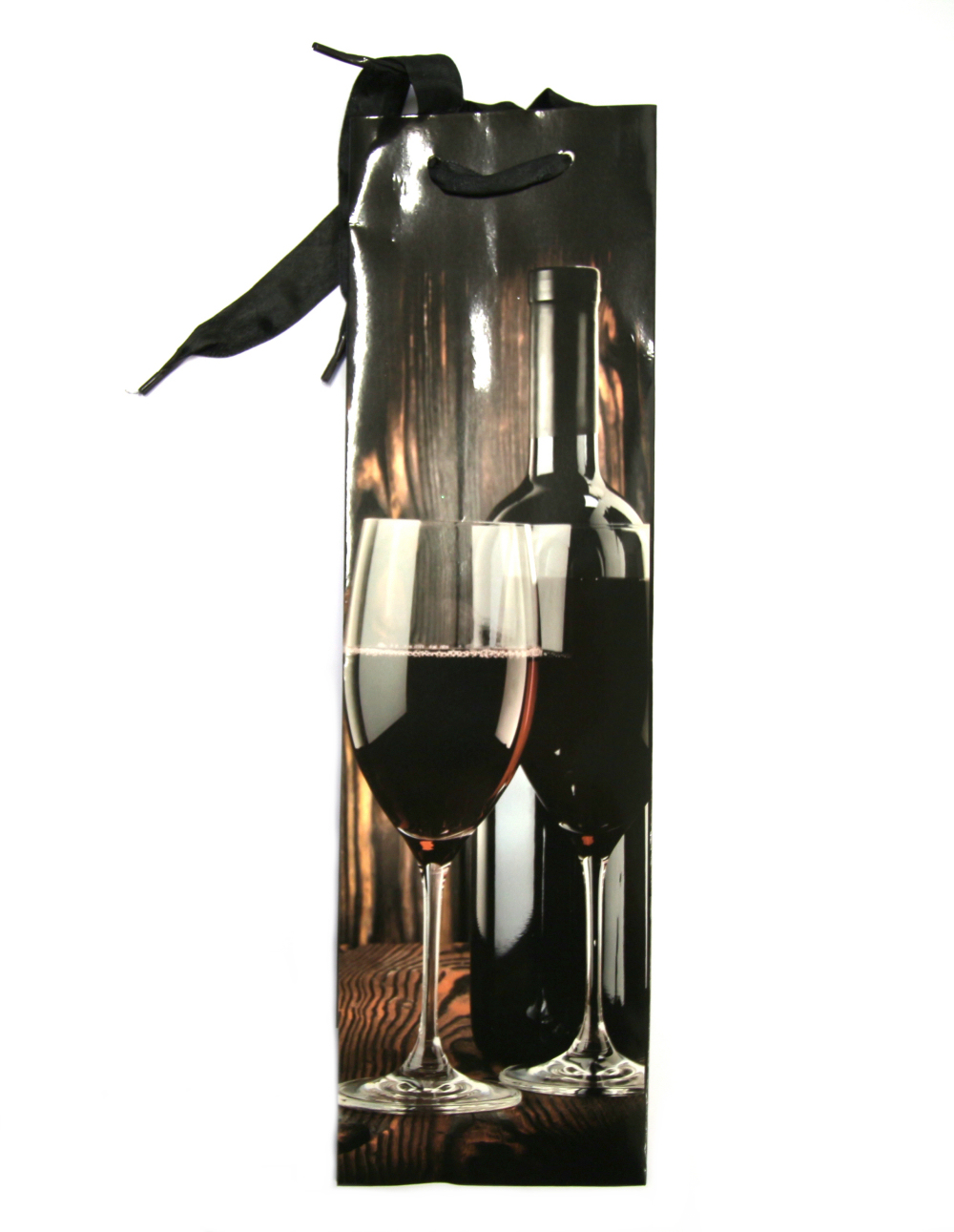 Lahjakassi viinille 10,5x10,5x36cm Viinipullo+lasi musta.tape scotch