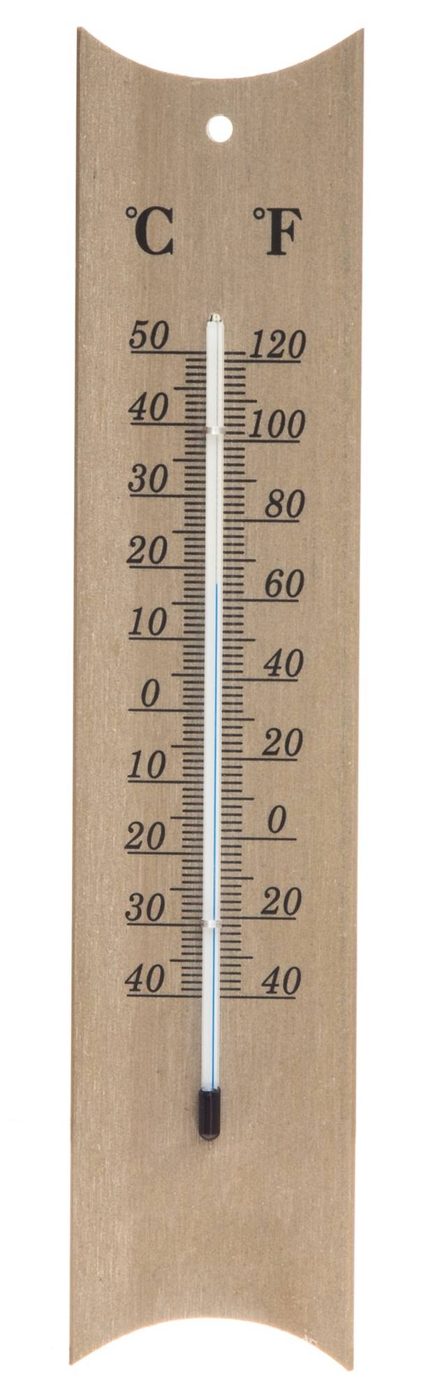 TARMO Lämpömittari. 6,5 x 1,2 x 30 cm., 0,14 kg. Muovinen lämpömittari, joka on tehty näyttämään harjatulta metallilta. Mittausalue - 40 °C - 50 °C. Sopii sisä- ja ulkotiloihin.
