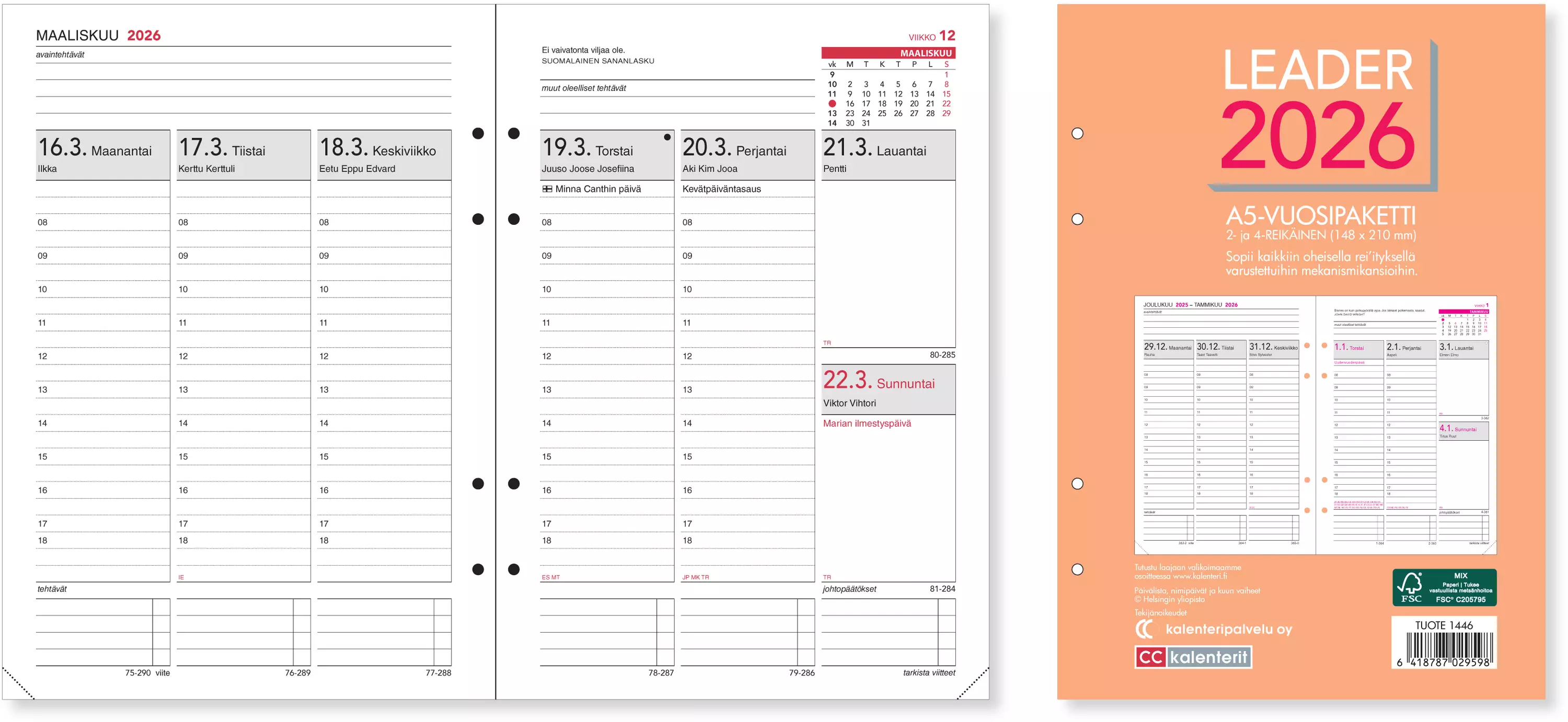 Leader-vuosipaketti A5, 2/4-reikää 2026