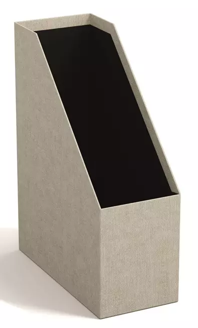 Bigso Estelle on tukeva, kohokuvioinen ja paperilaminoitu lehtikotelo lehtien ja asiakirjojen säilyttämiseen tyylillä. Sen selkämyksessä on koristeena nahkavedin. Tuote on valmistettu vähintään 80-prosenttisesti kierrätysmateriaalista ja sillä on FSC Mix -sertifikaatti. Mitat: 115 x 245 x 320 mm. Väri: C55 pellava.