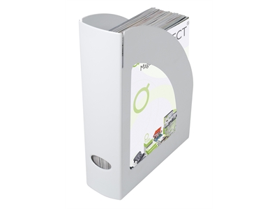 Tyylikäs ja tukeva lehtikotelo kuvastoille, esitteille, aikakausilehdille ym. Materiaali kierrätyskelpoista polystyreeniä.