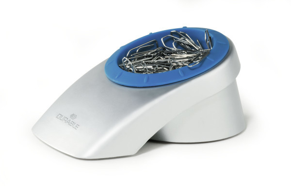 Tämä tyylikäs annostelija toimitetaan 100 paperiliittimellä ja siinä on suuri magnetoitu vanne, jonka avulla leikkeet voidaan poistaa helposti. Siinä on kumijalat, jotka tarjoavat liukumattoman alustan. Mitat: 63 x 92 x 144 mm (H x L x P)