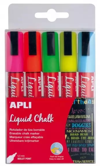 Liitutaulukynä pyö-5,5mm 5 neonväriä