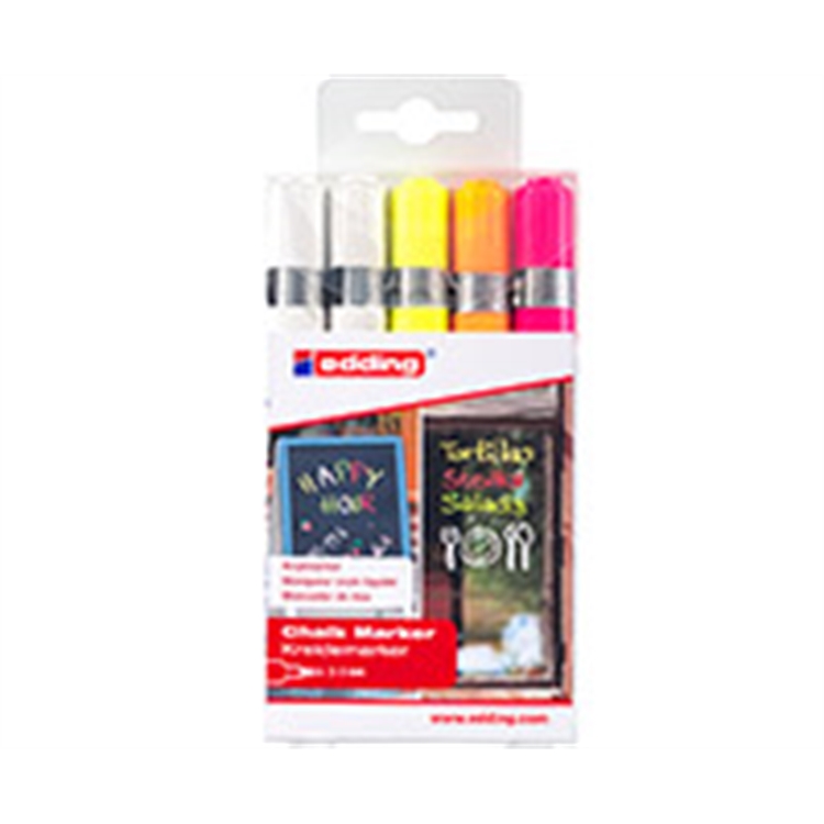 Pyöreäkärkinen vesipohjainen tussi. Sopii lasitauluille, ikkunoihin ja muille koville pinnoille. Pyyhittävissä kostealla liinalla.Värilajitelma: keltainen, oranssi, pinkki ja 2 valkoista.