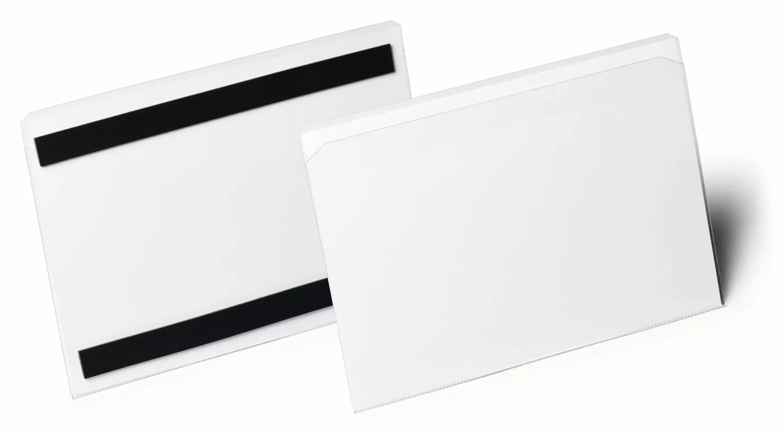 Läpinäkyvästä PET-kalvosta valmistettu asiakirjatasku, jossa on kaksi magneettiraitaa kääntöpuolella. Täydellinen käytettäväksi metallipinnoilla, kuten varastohyllyillä, telineillä ja metallisäiliöillä. Sopii skannereille ja on pysyvästi säilytettävä. Asiakirjapidikkeen etuosassa olevan huulen ansiosta lisäosat voidaan vaihtaa nopeasti. Sisämitat: A5 vaakasuora / 210 x 148 mm (L x K).