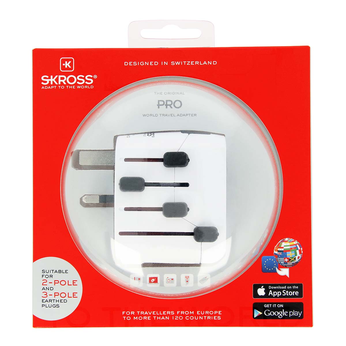 Skross matka-adapteri Maailma PRO Maadoitettu.Tämä kompaktin kokoinen matkasovitin takaa 2- ja 3-napaisten eurooppalaisten laitteiden turvallisen liitännän ympäri maailman matkustusmaan pistorasian erikoisuudesta riippumatta.