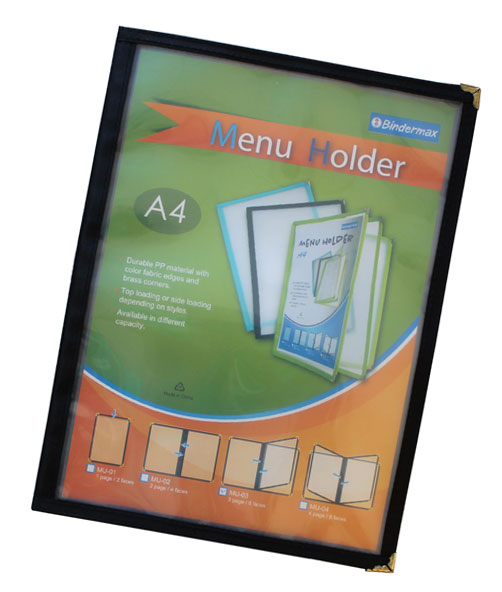 Menu-kansio A4, 3 läpinäkyvää taskua