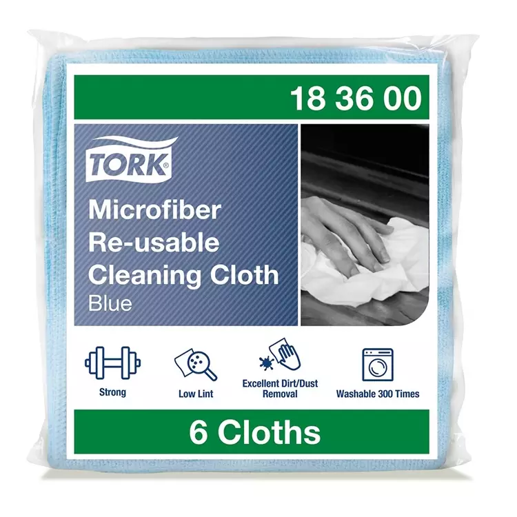 Tork Mikrokuituliina uudelleen käytettävä on laadukas mikrokuituinen puhdistusliina. Tämä tuote on suunniteltu pestäväksi ja uudelleen käytettäväksi. Tämä vähän nukkaava puhdistusliina puhdistaa kovat sileät pinnat erittäin hyvin. Väri: sininen; pituus ja leveys taitettuna 30.5 cm.