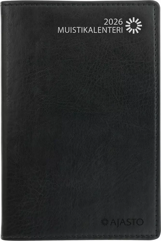 Ajasto Muistikalenteri 2026 pitää sinut ajan tasalla taloutesi tulosta ja menoista. Kalenteri toimii maksupäiväkirjana ja kassakirjana, ja siinä on kätevästi kaksi kalenteriosaa kuukausi- sekä viikkonäkymällä. Tukevia keinonahkakansia on miellyttävä käsitellä ja kansien musta väri on tyylikkään ajaton. Ajasto Muistikalenteri 2026 tärkeimmät ominaisuudet: koko 82 x 128 mm. leatherette-kannet. sidottu. päiväkirja 51/2025–53/2027. suomalaiset nimipäivät. maksupäiväkirja. kassakirja. FSC®-sertifioitu tuote.