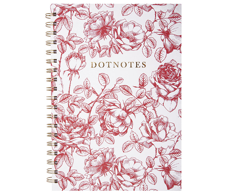 Muistikirjassa tehtävälistat, post-it -laput ja muistiinpanot ovat kätevästi samassa paikassa. Sisältää 3 content-sivua. Kartonkikannet punaisilla kukilla ja kultapainatuksella. Parikierresidottukultaisella parikierteellä. Numeroidut pistesivut. 70 lehteä (140 sivua). 120g paperi. Mitat 179x256 mm. FSC-merkitty.