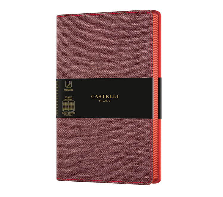 Muistikirja Castelli 13x21cm 224s ruudut Harris Maple Red