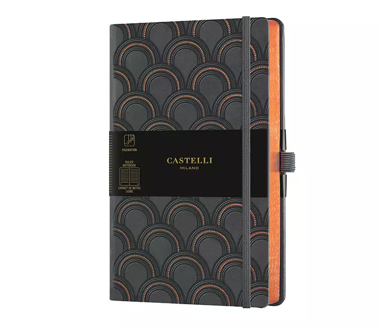 Muistikirja Castelli 13x21cm viivat C and G Art Deco Copper