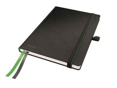 Keinonahkakantisessa Leitz Complete -muistikirjassa on kiinnityslenkki, kynäteline, 2 kankaista sivumerkitsintä, merkintätarroja ja taskut sekä etu- että takakannessa irtopapereita varten. Viimeiset 8 sivua on perforoitu, joten niitä voi käyttää irroitettavina muistilappuina.
