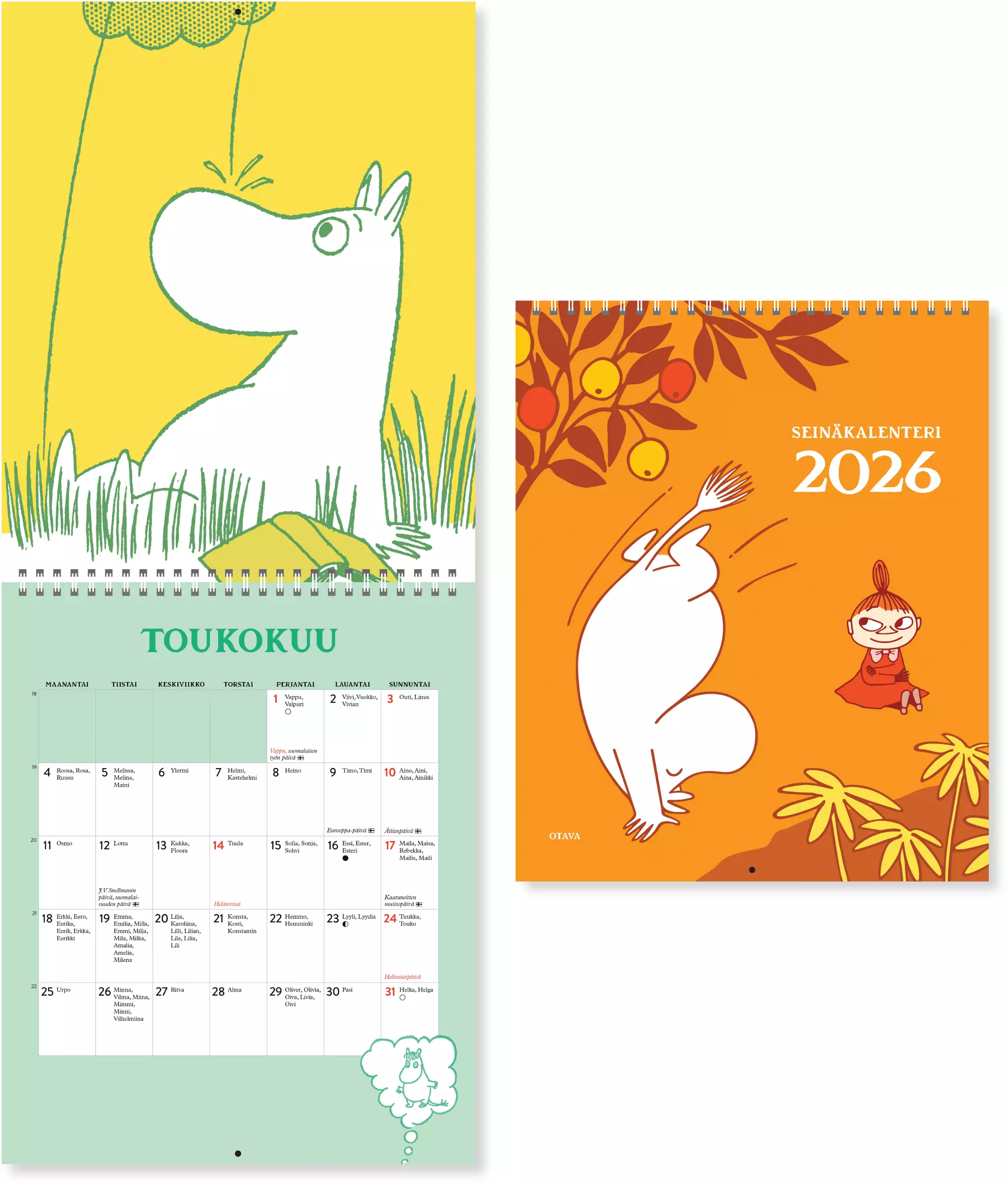 Muumien seinäkalenteri arjen avuksi! Löydä arjen viehkeys muumien kanssa joka kuukausi uudelleen. Upeilla kuukausisivuilla Tove Janssonin alkuperäiskuvituksista muokatut kuvat. Koko