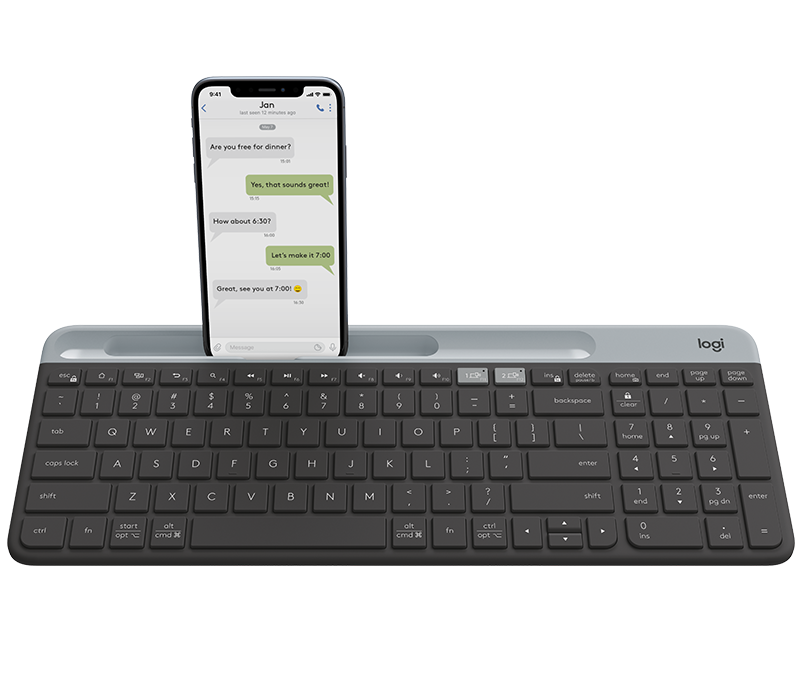 Anna joka tilalle nykyaikainen ilme ja käytä samaan aikaan useaa laitetta K580 Slim Multi-Device -näppäimistöllä. Se on erittäin ohut, edustavasti muotoiltu näppäimistö, jolla voit näppäillä tekstiä tietokoneella ja vaihtaa sitten älypuhelimeen tekstiviestin kirjoittamista varten.