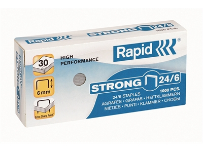 Nitomanasta Rapid Strong 24/6mm-1000kplVahva, galvanoitu nitomanasta, koko 24/6. Rasiassa 1000 kpl.