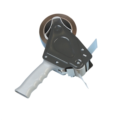 Käsikäyttöinen, jarrullinen katkaisulaite 38 ja 50 mm pakkausteipeille. Kuvassa näkyvä teippirulla ei sisälly hintaan.