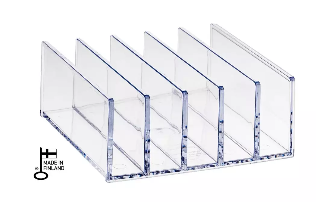 Palaset P-0501 -kirjerenki on korkealaatuinen, ajaton ja monikäyttöinen Ristomatti Ratian suunnittelema kotimainen klassikko. Tyylikäs teline soveltuu mm. kirjeiden, laskujen, servettien, meikkipalettien, tablettien tai kännyköiden organisointiin ja säilytykseen niin kotona kuin toimistollakin. Ristomatti Ratian suunnittelemalla ja Suomessa valmistetulla tuotteella on Avainlippu-tunnus. Tuote on valmistettu elintarvikekelpoisesta ja BPA-vapaasta materiaalista. Mitat: 130 x 130 x 55 mm.