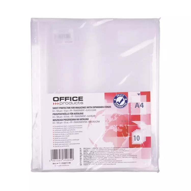 Paljetasku A4 ilman läppää. Lasinkirkas PP, paksuus 170 micronia. Ylhäältä auki. Yleisreijitys. 10 kpl/pss.
