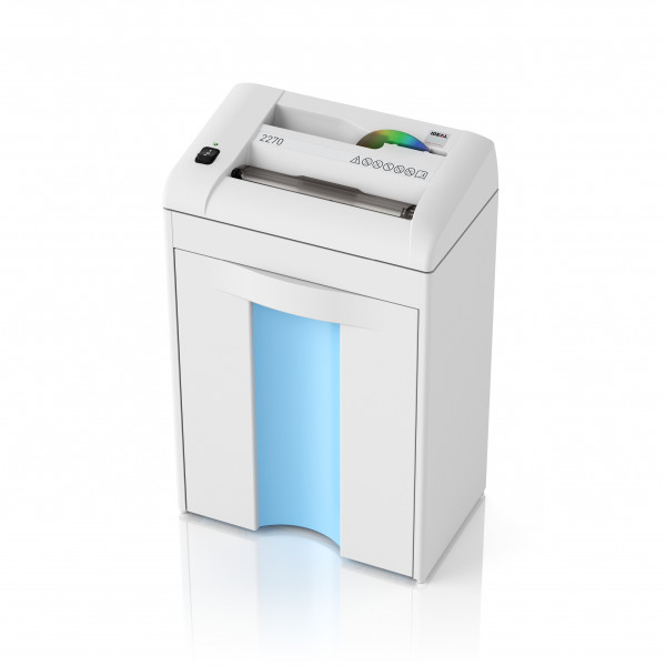 Ideal 2270 paperintuhooja sopii henkilökohtaiseen käyttöön tai pieniin yrityksiin. Puurunko vaimentaa käyttöäänen erittäin hiljaiseksi. Soveltuu myös luottokorttien ja CD-levyjen tuhoamiseen. Automaattinen käynnistys ja pysäytys myös paperitukoksen sattuessa.