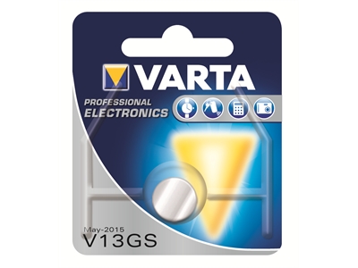 Paristo Varta Electronics Hopeaoksidi V13GS/357Jännite 1.55V/180 mAh. Mitat 11.6x5.4 mm.