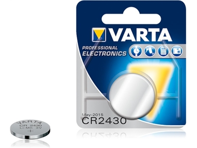 Paristo Varta Electronics Litium CR2430Pienikokoiset litiumparistot sopivat mm. laskimiin, kameroihin ja kaukosäätimiin. Kapasiteetti: 560 mAh, Mitat: korkeus 5 mm x halkaisija 24,5 mm, paino: 6,2 g
