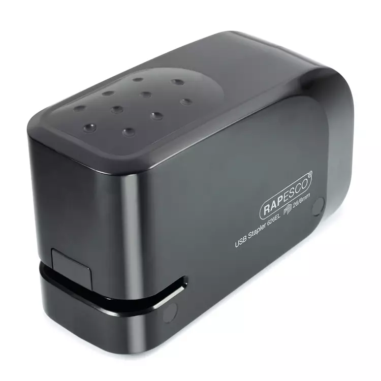 Rapescon paristonitoja nitoo vaivatta 15 arkin paperipinot. Se on paristotoiminen, mutta pakkauksessa mukana tulee myös USB-latausjohto, jolla nitojan voi ladata. Tämä paristonitoja on kompaktin kokoinen ja sitä voi helposti käyttää pöydälle asetettuna yhdellä kädellä luistamattomanpohjansa ansiosta.