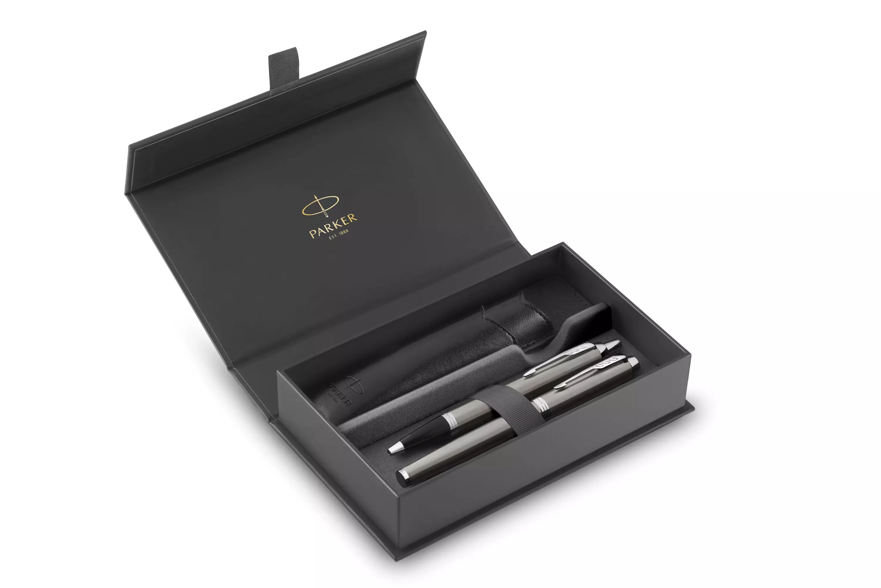 Parker IM Duo -lahjasetti PU-kynäkotelolla, ruostumattomasta teräksestä viimeistelty korkki ja runko, kromikoristeet, täytekynä ja kuulakärkikynä, keskikokoinen kärki, sininen muste. Parker IM Duo -lahjasetti PU-kynäkotelolla on 135 vuoden kokemus kynien valmistuksesta, ja se on tyylikäs, viimeistelty ja hienostunut. Jokainen setti heijastaa brändin ydinidentiteettiä ja loistaa yksinkertaisuudellaan, jolloin kynä ja kotelo ovat keskipisteenä. Kynäkotelo on kirjoittajalle ihanteellinen asuste, joka varmistaa, että kynä on aina mukana. Täydellinen lahja kaikkiin tilaisuuksiin.