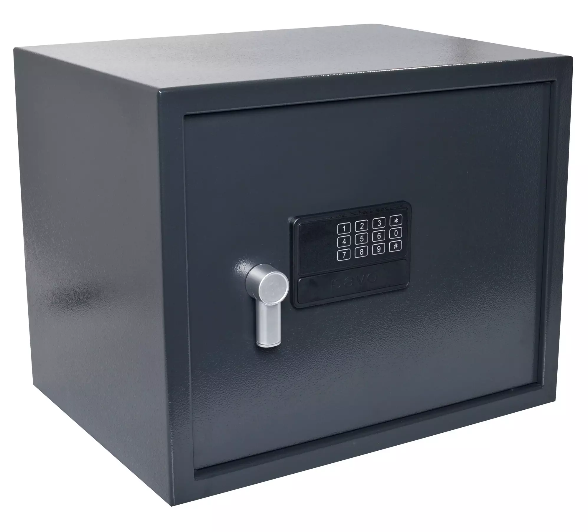 Pavo 8054350 turvakaappi on tilava ja luotettava säilytysratkaisu, joka tarjoaa 35 litran tilavuuden tärkeiden esineiden ja asiakirjojen turvalliseen säilyttämiseen. Kaapin mitat ovat 430 x 350 x 330 mm, ja sen tummanharmaa väri antaa sille modernin ja huomaamattoman ulkonäön, joka sopii täydellisesti sekä toimistoympäristöihin että kotikäyttöön. Kaapissa on sähköinen näppäinyhdistelmälukko, joka takaa turvallisuuden ja helpon käytön. Seinälle asennettuna turvakaappi pysyy tukevasti paikallaan, mikä estää siirtämisen ja lisää turvallisuutta. Tämä tekee siitä erinomaisen valinnan arvokkaiden tavaroiden, kuten korujen, käteisen, tai luottamuksellisten asiakirjojen säilyttämiseen. Pavo 8054350 turvakaappi yhdistää tilavuuden, turvallisuuden ja kestävän rakenteen, tarjoten pitkäikäisen ja luotettavan ratkaisun arvotavaroiden säilytykseen. Tämä kaappi on suunniteltu täyttämään vaativien käyttäjien tarpeet tyylillä ja käytännöllisyydellä. Takuu 5 vuotta.