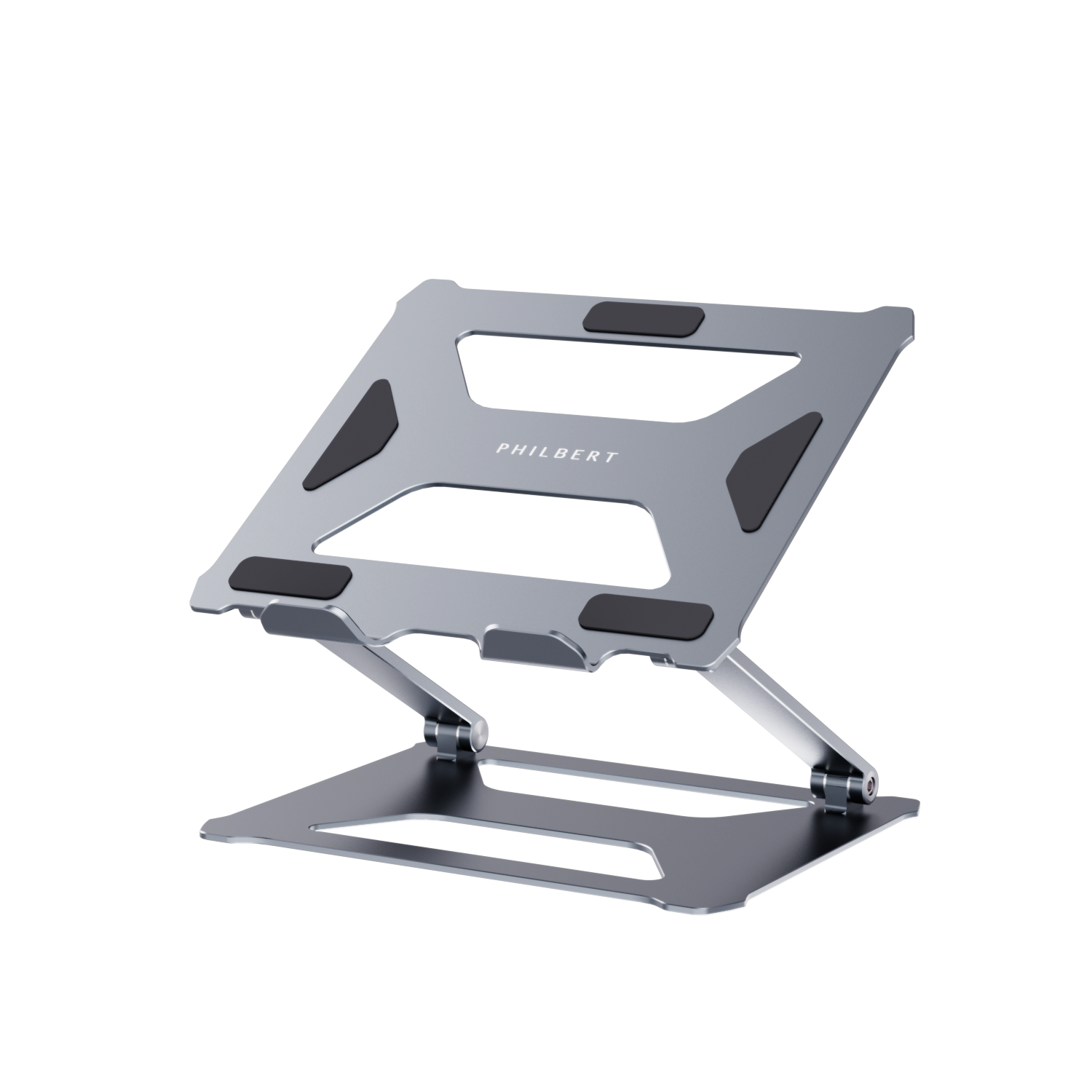 Jalusta on valmistettu huippuluokan alumiinista ja on erittäin tukeva. Sitä voidaan säätää pystysuunnassa optimaalisen korkeuden saavuttamiseksi ja kallistaa vaakasuoraan, jotta saat mukavimman työasennon. Se tarjoaa täydellisen ergonomisen työasennon ja poistaa niskan, hartioiden, laukun ja silmien kivut. Se on taitettava ja helppo kuljettaa. Jalusta on rei'itetty, jotta tietokone ei ylikuumene, ja sen ylä- ja alaosassa on silikoninauhat naarmuuntumisen estämiseksi.