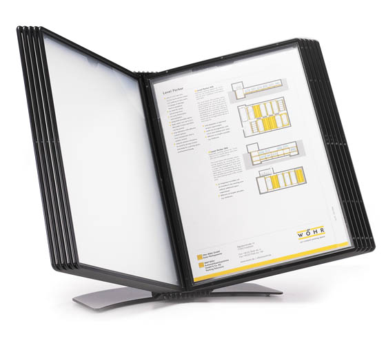 Pöytäteline kymmenelle A4-taskulle, vakaa metallijalusta, terästä. Taskut tilattava erikseen: 62056 PIKAHAKUTASKU A4 PP MUSTA/10 62053 PIKAHAKUTASKU A4 PP PUNAINEN/10 62054 PIKAHAKUTASKU A4 PP SININEN/10 63137 PIKAHAKUTASKU A4 PP VÄRILAJ./10 62055 PIKAHAKUTASKU A4 PP VALKOINEN/10
